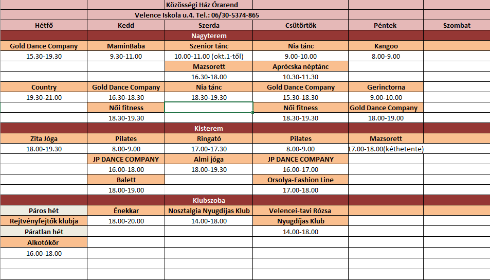 Közösségi Ház Órarend