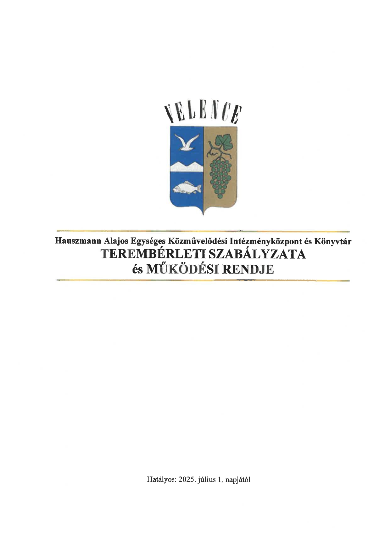 Közösségi Ház Teremhasználati szabályzat